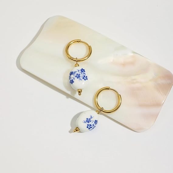 Lorram Home PageShopEarringsLorram Jewellery Blue and White Ceramic Drop Earrings
